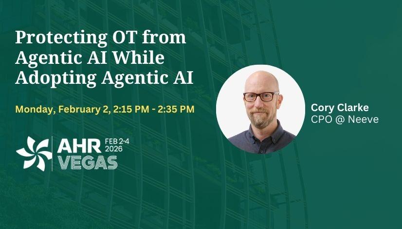 Cory Clarke to speak at AHR 2026 Chief Product Officer at Neeve, Cory Clarke will speak at a featured industry seminar, Protecting OT from Agentic AI While Adopting Agentic AI on Monday, February 2, from 2:15 PM – 2:35 PM at AHR.